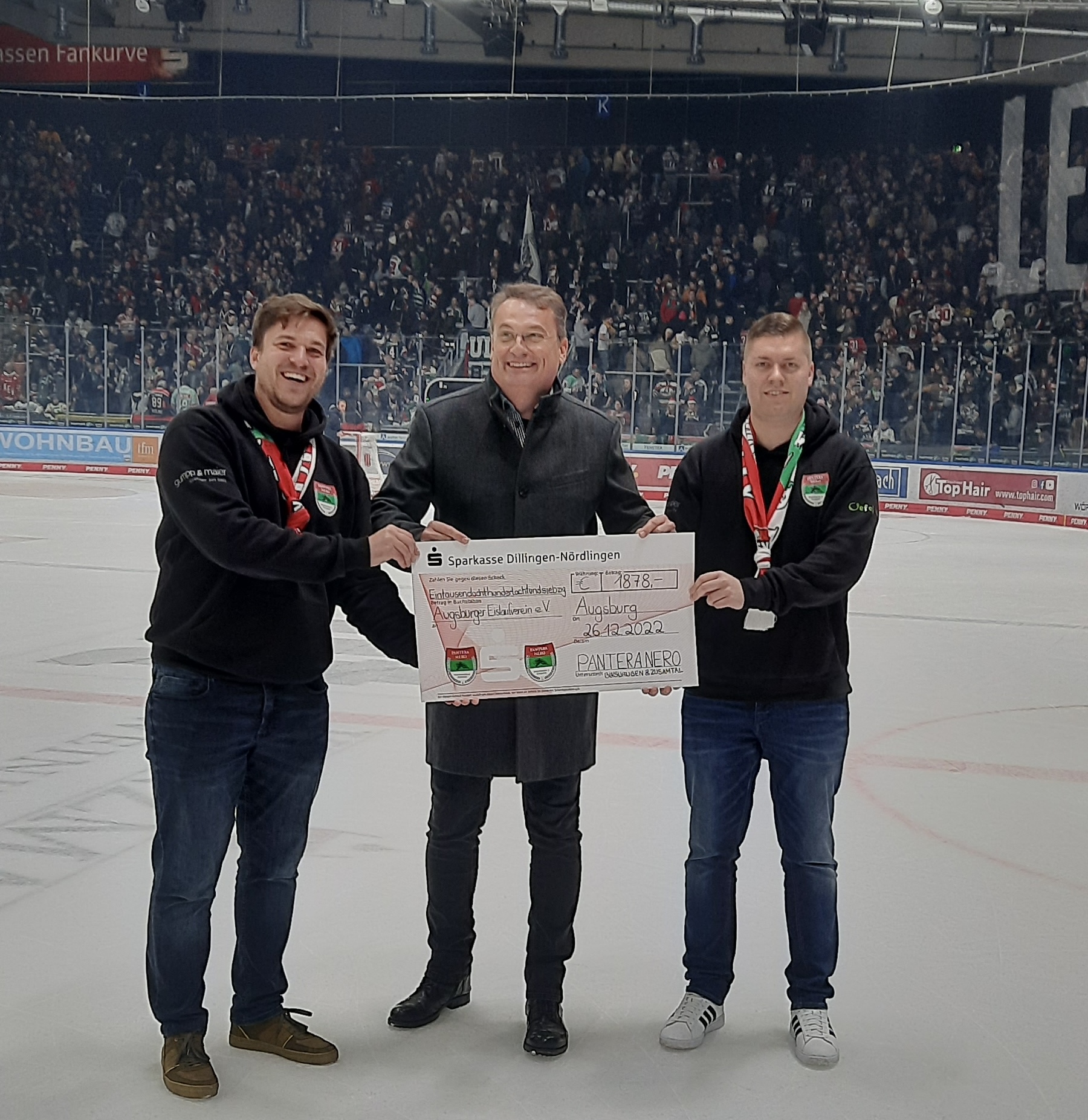 Der Fan Club Panthero Nero übergab beim Heimspiel am 26.12. gegen München an den Präsidenten des AEV Wolfgang Renner einen Scheck in Höhe von 1878 Euro. Der AEV bedankt sich recht herzlich!